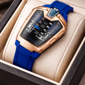 Seastar Amd Leather Strap Watch (Gold Dial Inner Blue)