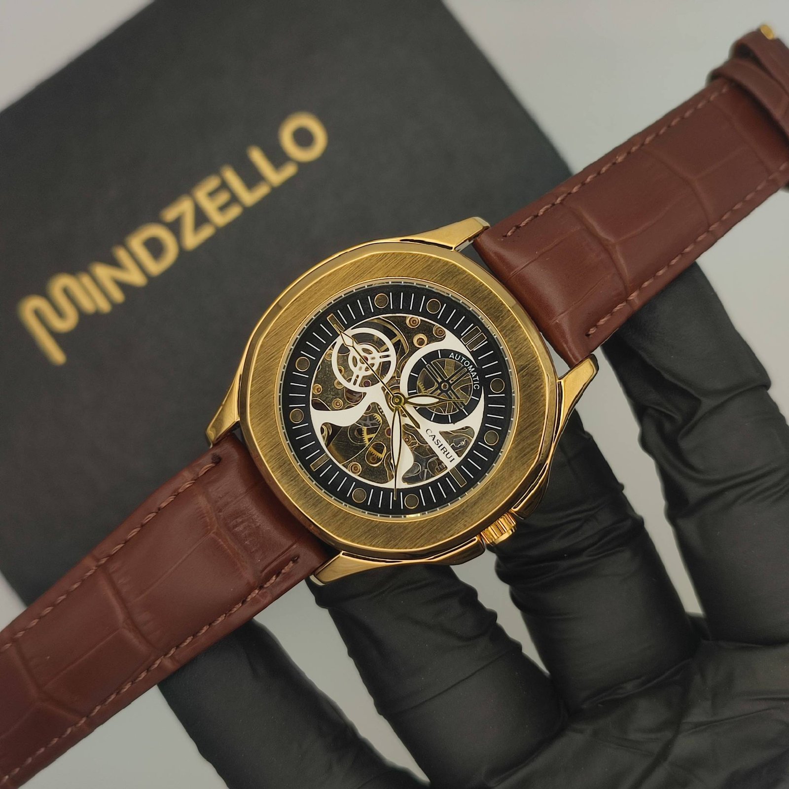 • Golden Skeleton Brown Leather Strap (Automatic Watch)